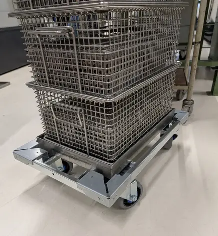 Nos embases roulantes Lean Dollys sont en structure tubulaire afin de mieux stabiliser vos piles de bacs, d'apporter une capacité de charge supérieure à 250 kg, de sécuriser leur empilement à vide.