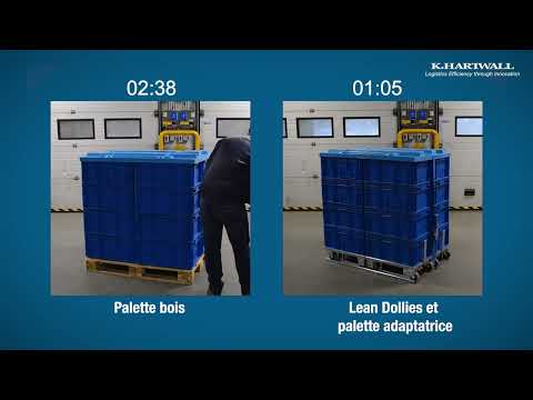 Grâce à ses rails intégrés, la palette permet de faire rouler les embases Lean Dollys pour un positionnement et un verrouillage actionnable au pied et élimine toute rupture de charge lors du passage d’un poste interne à une expédition camion.
